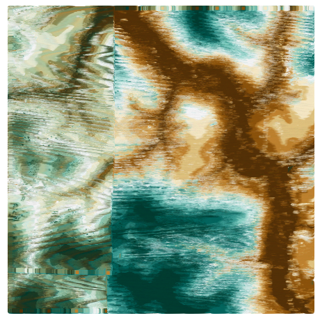 All caveats aside, I’m not convinced there is any great potential for adding severe systematic bias. Systematic bias in the absence of an interpolator becomes less of a concern the more dense your point cloud. Here, the maximum distance to a nearest neighbor in areas not near a specular reflector (water) is about 5 feet. Interpolation, unless it’s a cliff or slump area is more a luxury than a necessity, so long as you don’t require an accuracy to your canopy height that exceeds a few feet, and I can’t think of any ecological applications that really need such accuracy. And in cliff or slump areas, a leaning tree over a gorge can severely bias your results, with or without an interpolator.