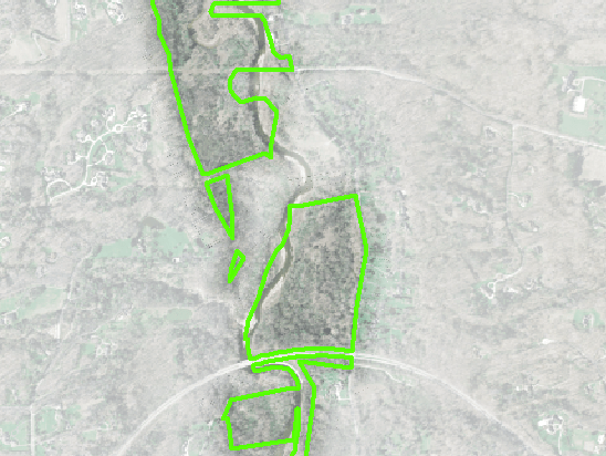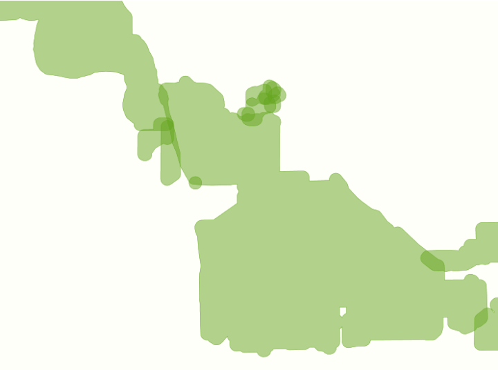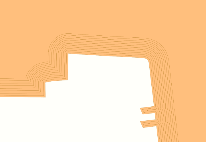 I maintain a lot of versions of our exterior property boundary layer for our park system for different purposes, e.g. this post. What I’d like to include in this automatically managed dataset is a multi-ring buffer version of the dataset for the purpose of a careful mask with fade (also useful for showing coastal vignettes— oops, ESRI link), e.g.: