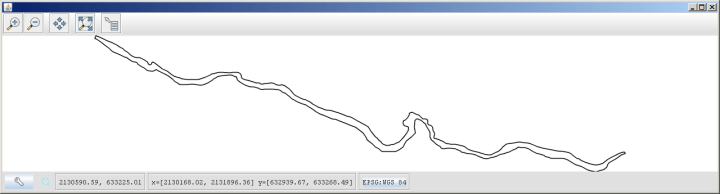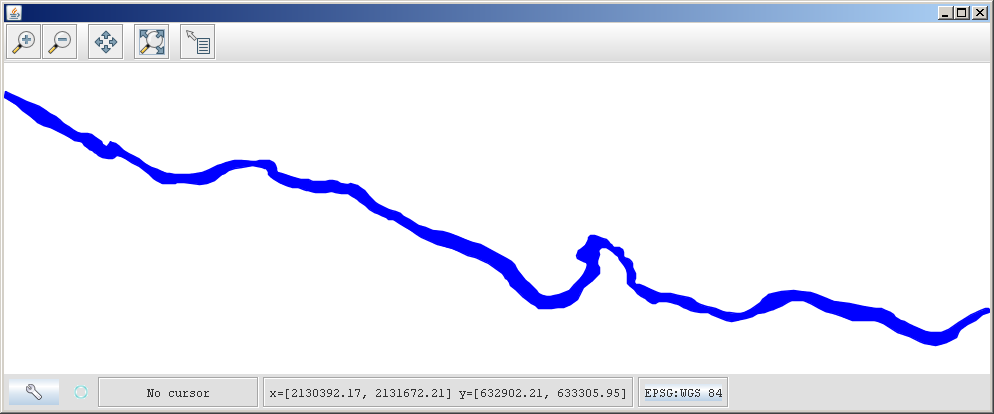 See the centerline running through the stream? It’s not perfect, but apply some densification before we calculate the polygons, then select only that centerline, and Bob’s your uncle, you have a very nice stream centerline for flowline calculations, labeling, what have you. In future steps, I’ll set this up to extract that line as well, and perhaps host it as a WPS service on GeoServer. If I can (I’m not sure the limitations to GeoScript, have to bug the GeoScript guys today…), I’ll also use it to extend the labeling capabilities for my GeoServer instance without having to dig deep into Java development. Ah, I do love a good API.
