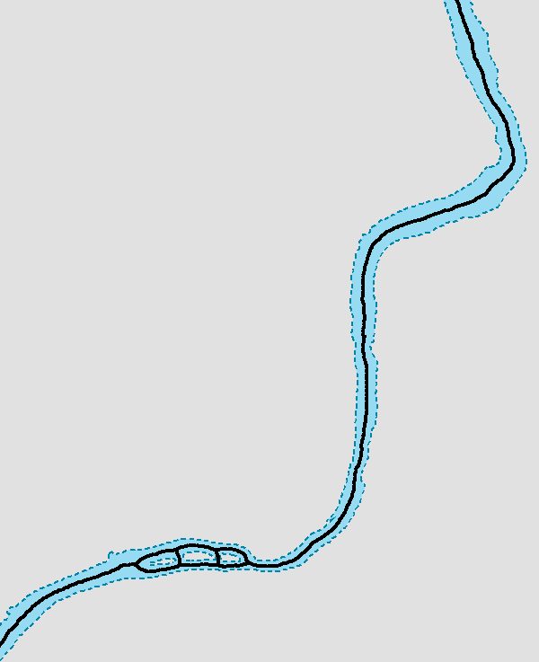 If we try to extract the centerline of a polygon using Voronoi polygons, like in my previous post, it works pretty well for hydrologic cases, like extracting a stream centerline from stream banks, e.g.: