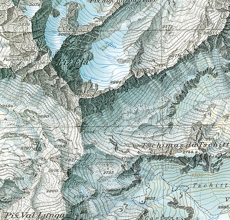 Imhof spends a lot of time on feature simplification and separation, a problem which keeps me up at night. For example, if you have a lot of overlapping and/or touching contours, what are the local distortions and simplifications that can be done to enhance map readability?