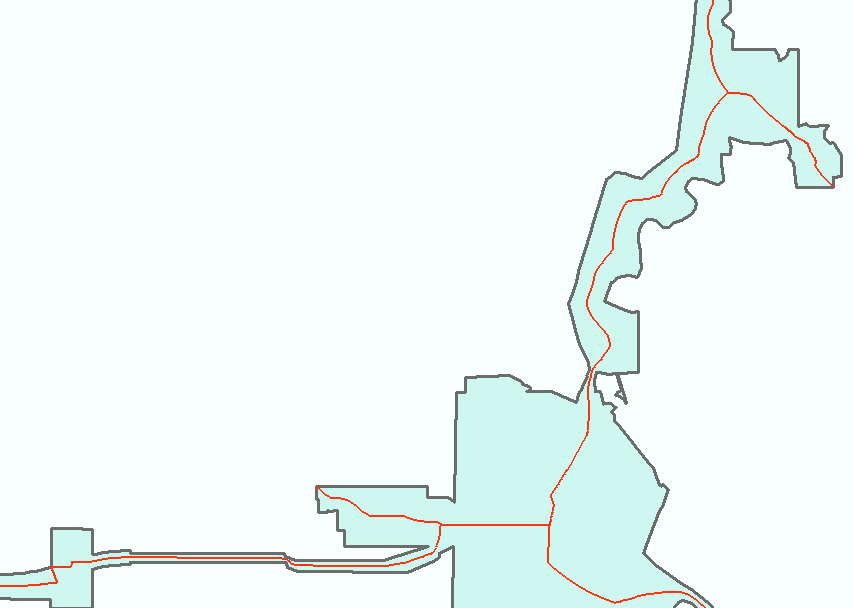 I’ve had a series of posts (including this one) on finding the center line of a complex polygon– especially with an interest in finding the center line of streams and river bodies. We have to give credit to my colleague Tom Kraft for solving the polygon centerline problem. Tom struck upon the very elegant solution– derive the medial axis, and then use a few end points to route between to extract just the important features. It’s not fully automated, but the amount of user input is so nominal as to be as close to automatic as I care about. So far, we have this implemented in a mix of ArcGIS and PostGIS, but I can easily picture a pretty simple web interface with a PostGIS back end for extracting the centerlines of polygons in a nominally interactive way. As a teaser, a non-stream example: