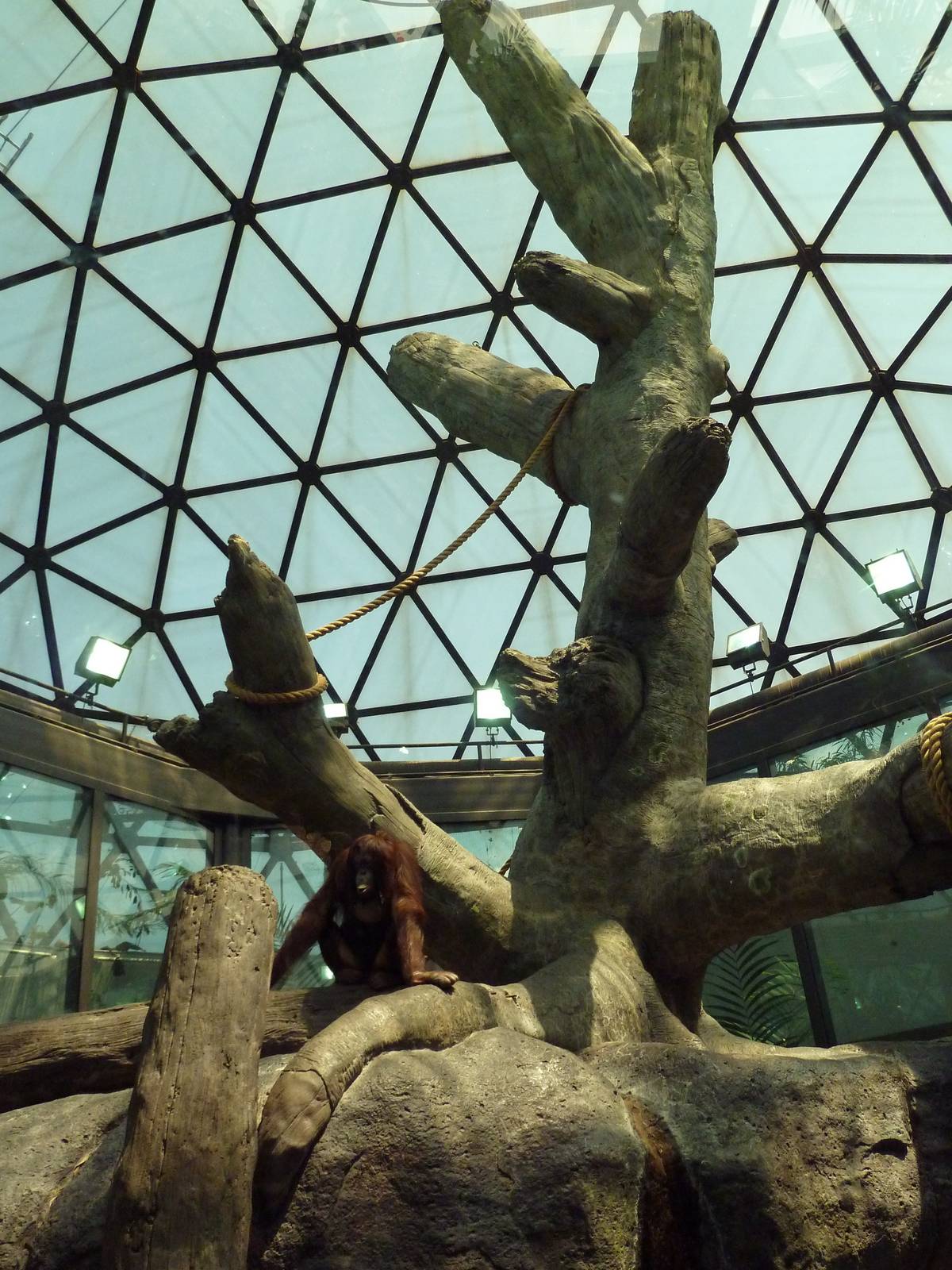 As such, orang enclosures need to give plenty of vertical space in order to fascilitate the physical and mental health of their ginger inhabitants. Cleveland Metroparks Zoo has a nice concrete tree, fire hoses strung between points, and plenty of space to climb. The enclosure was under a geodesic dome built in the 90s, and didn’t meet modern standards: UV light is critical, and the panels blocked too much of it. Time for a new dome!